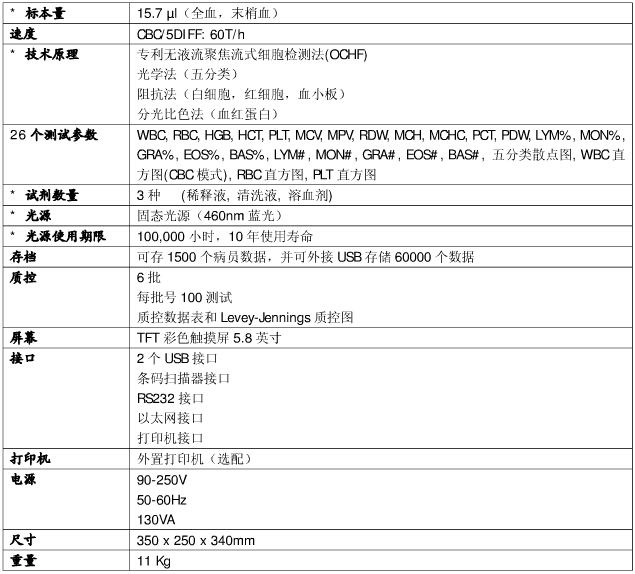 URIT-5500全自動(dòng)五分類血細(xì)胞分析儀參數(shù):