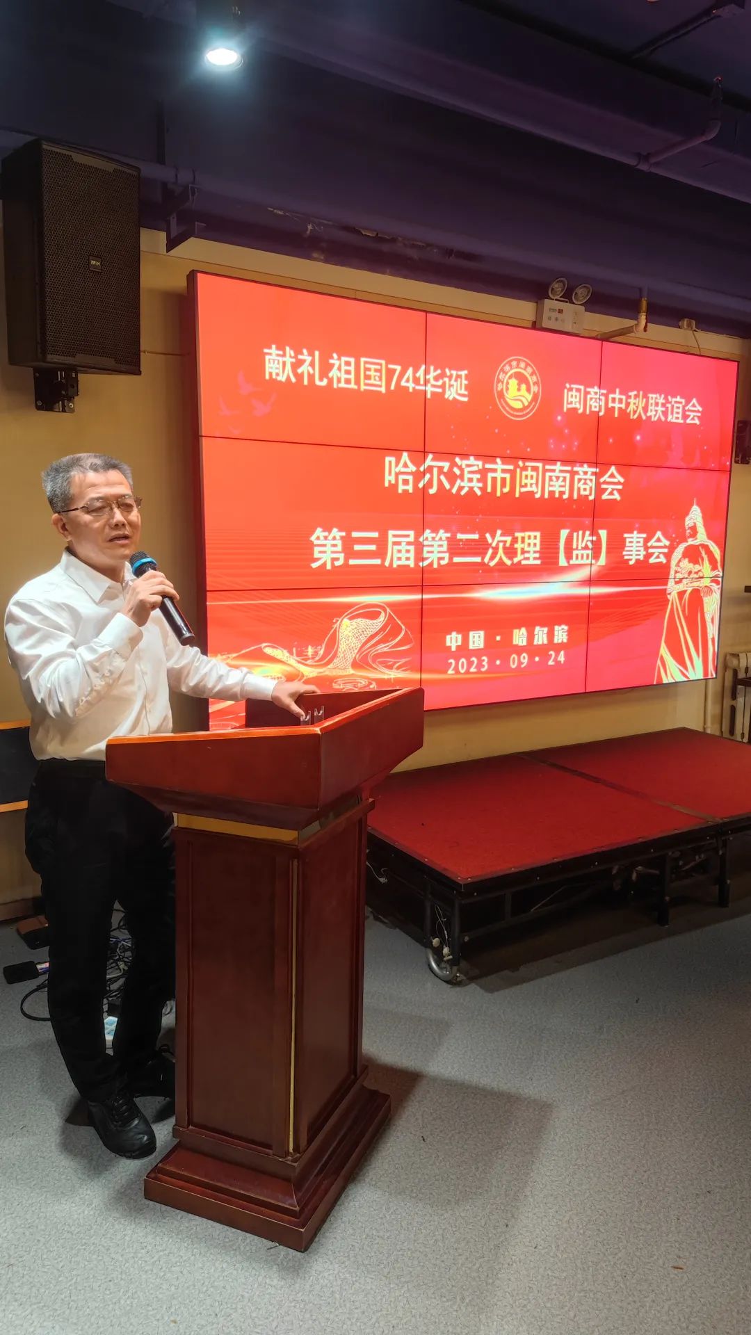 金風(fēng)迎盛世,麗日展新天。9月24日下午,在中華民族傳統(tǒng)佳節(jié)“中秋節(jié)”和偉大的祖國(guó)即將迎來(lái)74周年華誕之際,為了抒發(fā)熱愛(ài)黨,熱愛(ài)祖國(guó)情懷,踐行愛(ài)國(guó)主義精神,唱響時(shí)代主旋律,哈爾濱市閩南商會(huì)在會(huì)員單位——鷺發(fā)海鮮酒店,舉辦第三屆第二次理(監(jiān))事會(huì)暨獻(xiàn)禮祖國(guó)74華誕·閩商中秋聯(lián)誼會(huì)。哈爾濱市工商聯(lián)黨組成員、副主席甘立軍,泉州市工商聯(lián)副主席杜韶山,及哈爾濱市閩南商會(huì)理(監(jiān))事會(huì)成員參加了聯(lián)誼會(huì)。聯(lián)誼會(huì)由商會(huì)黨支部書(shū)記阮啟謙同志主持。