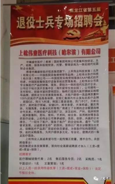 哈爾濱上松偉業(yè)醫(yī)療科技有限公司受邀參加了此次招聘會(huì),尋找與我們志同道合的人才。得到了良好的反響!