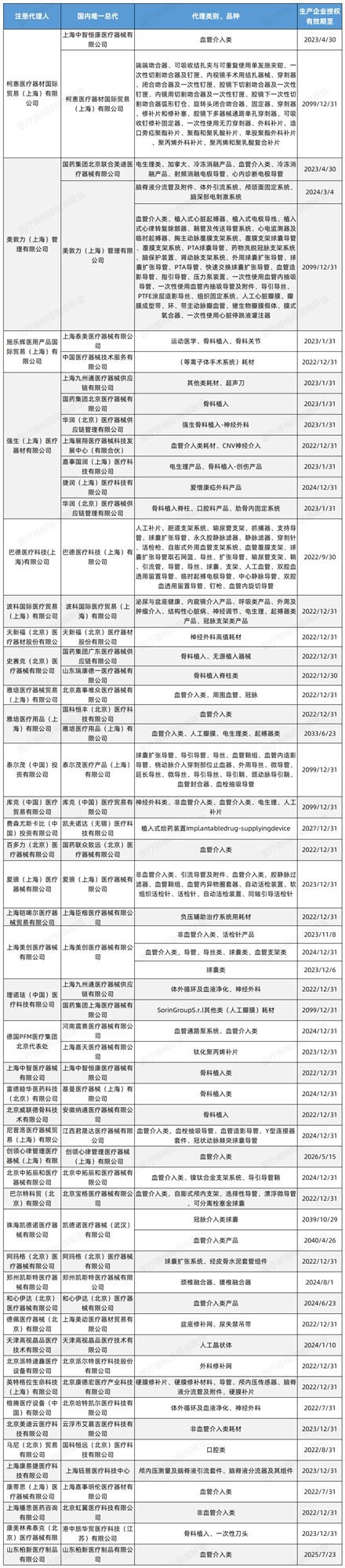 其中美敦力國(guó)內(nèi)總代有2家,分別是美敦力(上海)管理有限公司和國(guó)藥集團(tuán)北京聯(lián)合美迪醫(yī)療器械有限公司。其中,腦脊液分流管及附件、體外引流系統(tǒng)、顱頜面固定系統(tǒng)、腦深部電刺激系統(tǒng),由美敦力(上海)管理有限公司作為總代理。